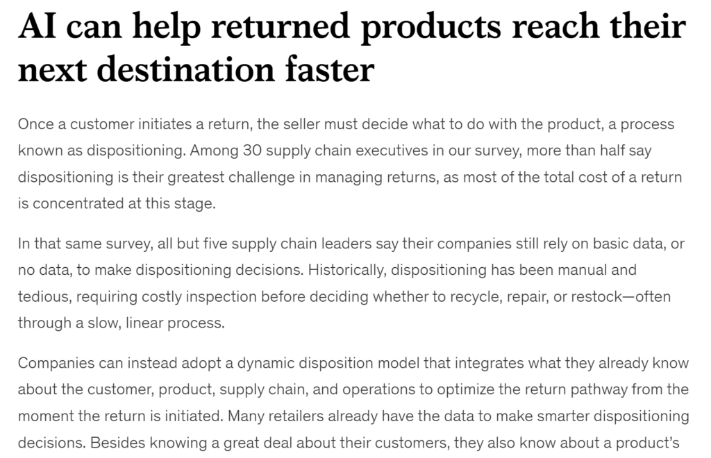(출처: McKinsey / https://www.mckinsey.com/industries/logistics/our-insights/from-cost-center-to-competitive-advantage-modernizing-reverse-logistics-with-ai?utm_source=chatgpt.com )