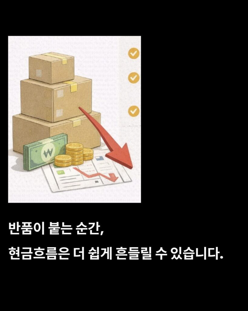 그래서 거래가 늘어도 반품 구조가 무거우면 현금은 더 부족해질 수 있습니다.