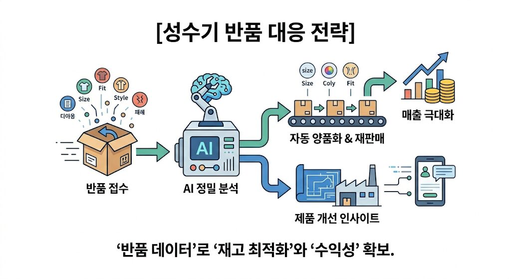 | Step 1 | 사유 정밀 분석 | AI가 ‘단순 변심’과 ‘상품 불량’ 실시간 구분 | 불필요한 마케팅비 절감 |
